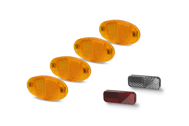 In het verkeer zijn reflectoren essentieel om de eigen veiligheid te vergroten. De meerdelige ACID reflectorset voor stuur, zadelpen en spaken is goedgekeurd volgens de StVZO en is hiervoor ideaal geschikt. Het omvat telkens één reflector voor de zadelpen en één voor het stuur, evenals vier reflectoren voor de spaken. Met deze set ben je ook bij slechte zichtomstandigheden en duisternis altijd veilig onderweg.