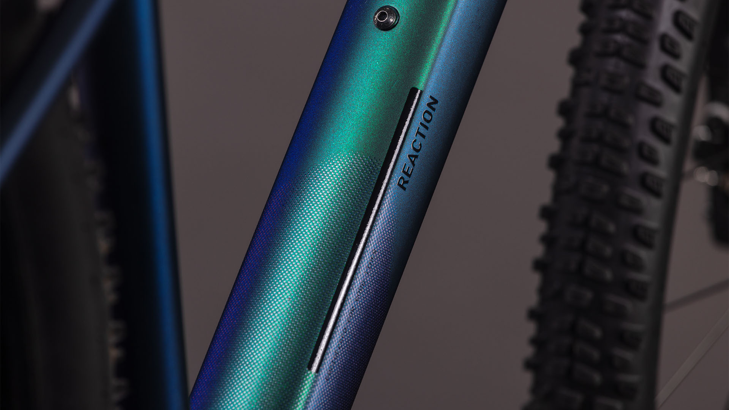 Het Reaction-frame valt op door zijn superstrakke uitstraling – dankzij de verbindingen bij het balhoofd- en zadelbuis die zijn gemaakt met de Smooth Welding-techniek. Daarnaast hebben we een geschroefde trapas ingebouwd en de kabels intern weggewerkt. Er is zelfs een bevestiging voor Flat Mount schijfremmen, die naadloos is geïntegreerd in onze standaardbevestiging. Montagepunten voor ACID spatborden en bagagedragers zijn ook aanwezig. De volledig trailgeschikte geometrie met een lagere bovenbuis en een taps toelopend balhoofd voor zeer betrouwbaar stuurgedrag biedt genoeg ruimte voor brede, grippy en comfortabele 2,25 inch banden. Omdat de eisen toenemen met de rijvaardigheid, kan het chassis bovendien worden uitgerust met een in te klappen zadelpen.
