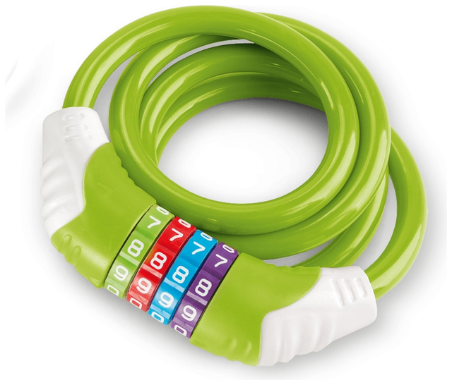 Het 120 cm lange cijferslot is verkrijgbaar in 3 vrolijke kleuren. De grote verstelwieltjes zijn gemakkelijk te bedienen voor kinderhanden en met een diameter van 10 mm biedt het voldoende bescherming voor het kleine uitstapje.
