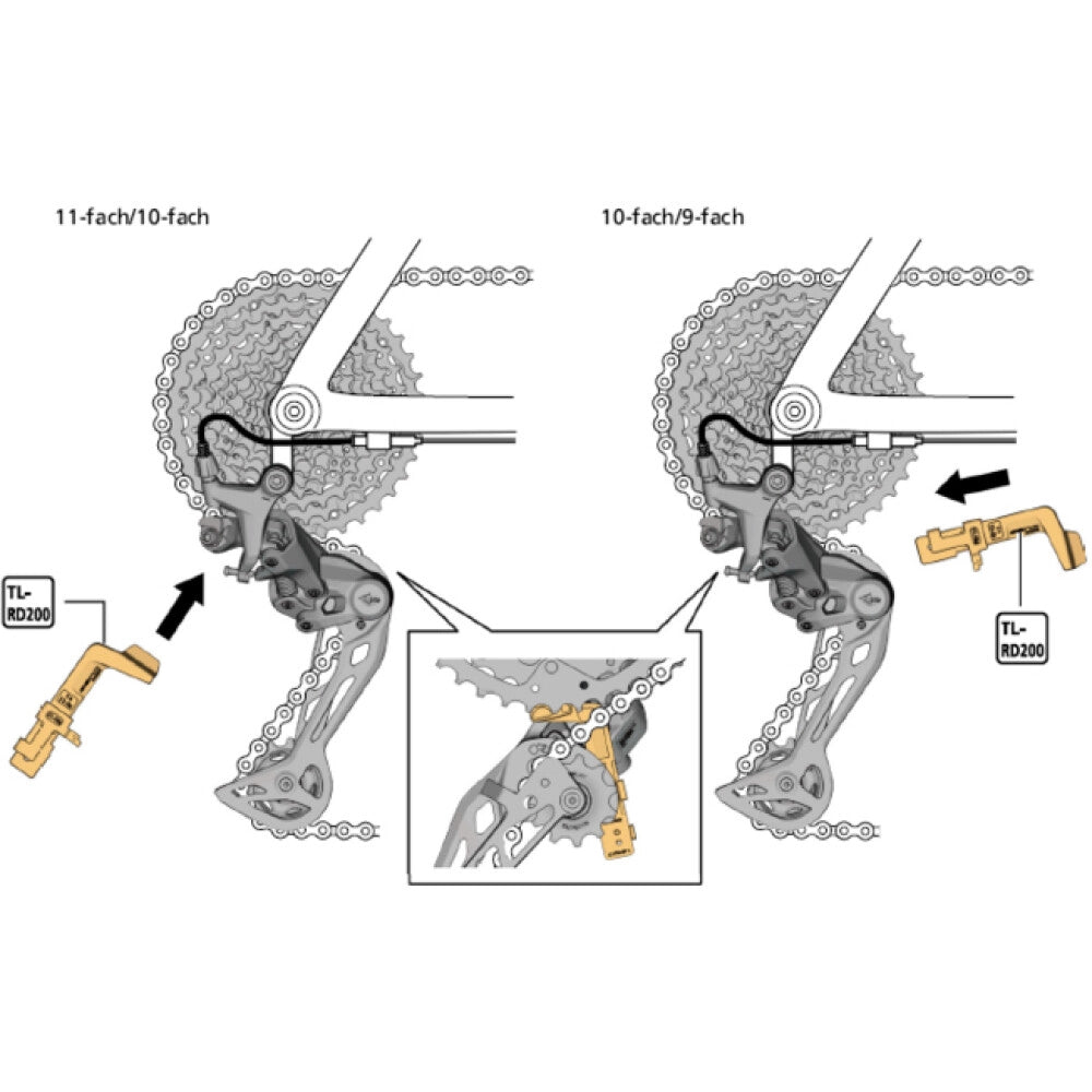 Om de optimale afstand van de derailleurrol tot de cassette af te stellen