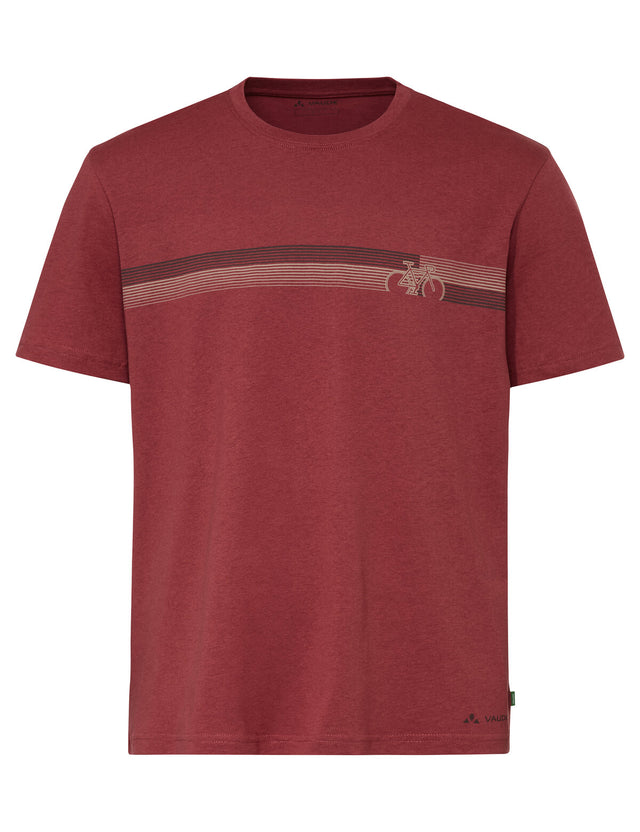 Duurzamer dan het Men's Cyclist T-Shirt V wordt het bijna niet! Dit T-shirt is voor 70% gemaakt van biologisch katoen en voor 30% van houtvezel. Deze materiaalcombinatie zorgt voor een geweldig draagcomfort en optimale functionaliteit tijdens het fietsen. Het is daarmee het perfecte shirt voor iedereen die van fietsen houdt en tegelijkertijd milieuvriendelijke kleding wil dragen – het shirt is gecertificeerd volgens de Global Organic Textile Standard (GOTS). Met ronde hals, korte mouwen en een subtiele print op de voorkant van het shirt. Het VAUDE Green Shape-label staat voor een milieuvriendelijk, functioneel product gemaakt van duurzame materialen.